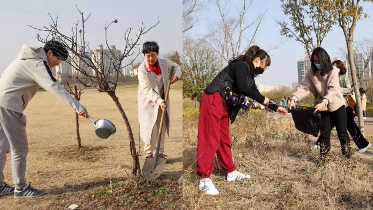女職工們在公園內(nèi)認真地清掃和拾撿地面及綠化帶里的垃圾、雜物,為園區(qū)內(nèi)的樹木松土澆水,大家的志愿行動為淮北市民提供了干凈整潔的休閑娛樂環(huán)境。