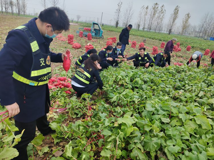 今年11月正值蘿卜上市的關鍵時期,可是偏偏遇上疫情來襲,愁壞了臨渙鎮(zhèn)前袁樓村的農(nóng)戶,因缺少勞動力,銷售渠道也減少,蘿卜滯銷。堅守在S202收費站的黨員干部了解到該情況后,在積極應對疫情防控的同時,主動對接農(nóng)戶,收費之余組織站內(nèi)員工來到田間地頭,在農(nóng)戶的指導下,協(xié)助采收、打包、搬運,大家忙得熱火朝天。本次助農(nóng)活動,不僅收獲了勞動豐收的喜悅,勞作之余,在場的每名員工還自掏腰包購買滯銷蘿卜,用實際行動為群眾辦實事,辦好事,為鄉(xiāng)村振興貢獻了微薄之力,受到當?shù)匕傩盏囊恢潞迷u。