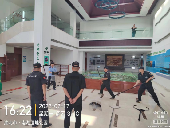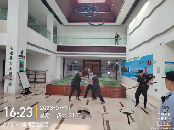 為了有效防范突發(fā)傷害事件,切實保障景區(qū)游客及員工人身安全,及時處置侵害人員安全的惡性事件,增強在真實情景下維穩(wěn)人員的心理素質(zhì)和反恐防暴意識,提高員工應(yīng)對處置能力,2023年7月17日下午16點,南湖公園公司聯(lián)合公安局烈山分局開展安全防暴防恐模擬演練活動,本次演練制定了詳細、周密的反恐防暴應(yīng)急演練預(yù)案,參加演練的部分員工,模擬突發(fā)傷害事件發(fā)生情況,進一步提高了對突發(fā)傷害事件的防范能力。