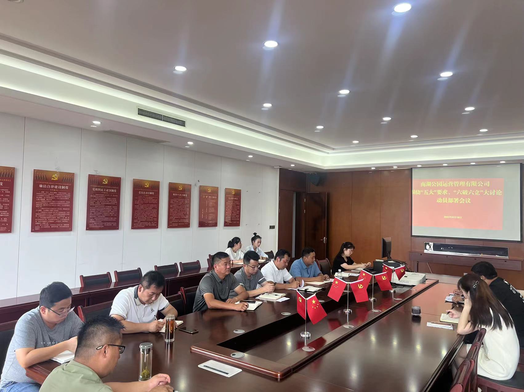 8月21日上午,南湖公園公司召開圍繞“五大”要求、“六破六立”大討論動員部署會,全體人員參加會議。