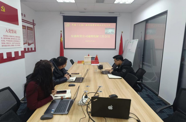 為有效控制公司業(yè)務(wù)風(fēng)險,東盛租賃公司組織業(yè)務(wù)人員對現(xiàn)有存量業(yè)務(wù)進行了全面梳理和排查,并成立逾期項目化解小組,積極做好存量項目風(fēng)險的防范和管控。2024年2月26日,東盛租賃公司總經(jīng)理、逾期項目化解小組組長何曉璐就目前風(fēng)險項目組織召開了逾期化解工作會議,專門研究部署風(fēng)險化解事宜。