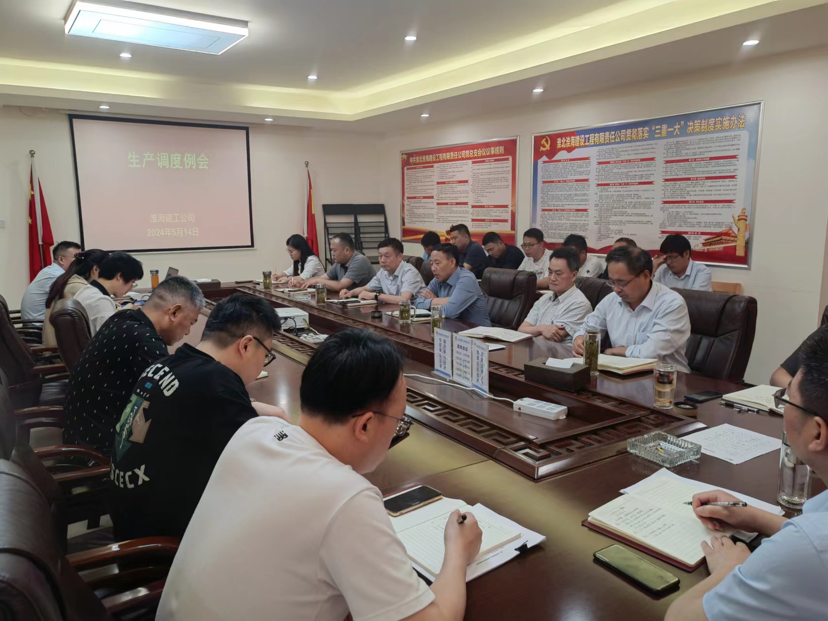 5月14日上午,淮海建工公司召開生產(chǎn)調(diào)度例會,重在總結(jié)近期各項目生產(chǎn)經(jīng)營情況,分析存在的問題,商討解決方案,確保公司各項工作穩(wěn)步推進(jìn)。