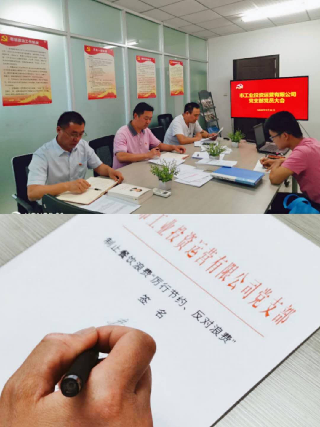 9月11日下午,工投支部在集團(tuán)五樓黨員活動室召開黨員大會。首先按學(xué)習(xí)計劃學(xué)習(xí)了習(xí)近平談治國理政第三卷;2.傳達(dá)學(xué)習(xí)了淮北市建投控股集團(tuán)有限公司黨委印發(fā)《關(guān)于深入學(xué)習(xí)宣傳貫徹習(xí)近平總書記考察安徽和在扎實推進(jìn)長三角一體化發(fā)展座談會上的重要講話精神的落實方案》的通知;3.學(xué)習(xí)貫徹了《習(xí)近平對制止餐飲浪費行為作出的重要指示》并在現(xiàn)場舉行“厲行節(jié)約、反對浪費”簽名活動;4.傳達(dá)《關(guān)于兩起群眾身邊腐敗和不正之風(fēng)問題》的通報;5.認(rèn)真學(xué)習(xí)了集團(tuán)公司意識形態(tài)工作秘密文件精神,研究部署意識形態(tài)領(lǐng)域風(fēng)險隱患排查、突出問題整治工作,會議要求,始終堅持馬克思主義在意識形態(tài)領(lǐng)域指導(dǎo)地位的根本制度,把學(xué)習(xí)宣傳貫徹習(xí)近平新時代中國特色社會主義思想作為首要政治任務(wù)。通過實時查、重點查、研判查,全面梳理排查本單位意識形態(tài)領(lǐng)域風(fēng)險隱患,列出問題清單、任務(wù)清單和責(zé)任清單,制定整治方案。