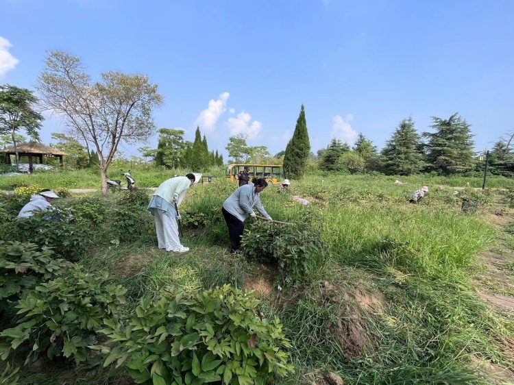 活動中,黨員同志們和運(yùn)營人員、機(jī)關(guān)辦公室人員齊上陣,手持鐮刀、鋤頭等除草工具,主動認(rèn)領(lǐng)除草修剪區(qū)域,鏟除牡丹花周邊的雜草、枯樹枝等雜物,積極投入到對牡丹園的養(yǎng)護(hù)工作中去,爭當(dāng)“綠水青山”的護(hù)衛(wèi)者,盡管烈日當(dāng)頭,酷暑難耐,卻絲毫未消減大家志愿服務(wù)的熱情和保護(hù)環(huán)境的堅定決心。?