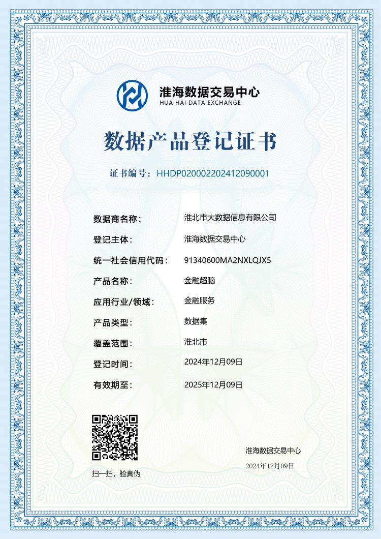 淮海數(shù)據(jù)交易中心作為淮海經(jīng)濟區(qū)數(shù)據(jù)交易的關(guān)鍵樞紐與創(chuàng)新高地,在數(shù)據(jù)交易規(guī)則制定、數(shù)據(jù)產(chǎn)品創(chuàng)新孵化、數(shù)據(jù)安全保障機制以及數(shù)據(jù)要素市場培育等多方面均積累了豐富且前沿的經(jīng)驗與實踐成果。淮北市大數(shù)據(jù)信息有限公司積極和淮海數(shù)據(jù)交易中心對接,深入學(xué)習(xí)與交流,探索數(shù)據(jù)領(lǐng)域發(fā)展新路徑與新機遇,拓展數(shù)據(jù)要素流通市場,分析探討數(shù)商合作生態(tài),近日該公司數(shù)據(jù)助貸產(chǎn)品“金融超腦”通過淮海數(shù)據(jù)交易中心的認(rèn)證,獲得數(shù)據(jù)產(chǎn)品登記以及數(shù)據(jù)商資格。