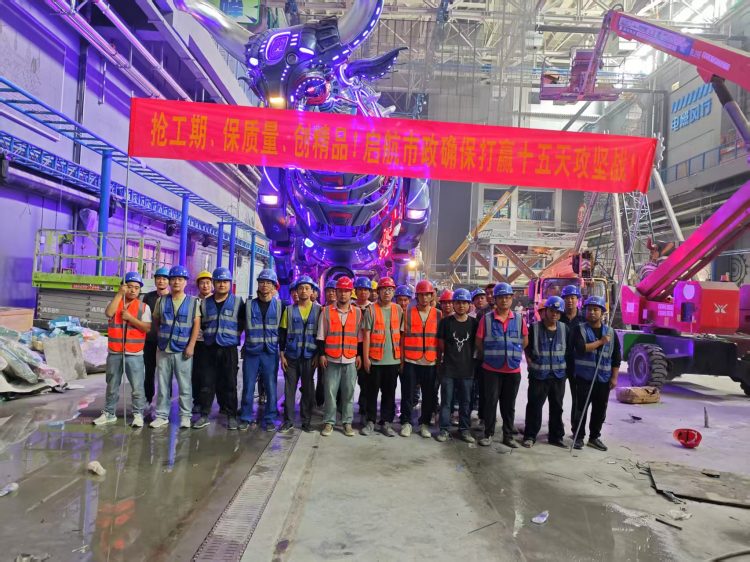 活動現(xiàn)場,項目施工團隊整齊列隊,在巨型機械裝置下莊嚴(yán)宣誓“搶工期、保質(zhì)量,創(chuàng)精品!啟航市政確保打贏十五天攻堅戰(zhàn)!”此次攻堅聚焦老電廠夔牛天街項目消防水電工程,工程完工后,將筑牢項目安全根基,完善基礎(chǔ)設(shè)施服務(wù),為后續(xù)參觀群眾的安全保障再加碼。