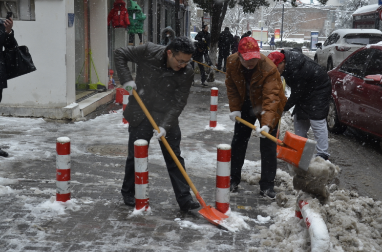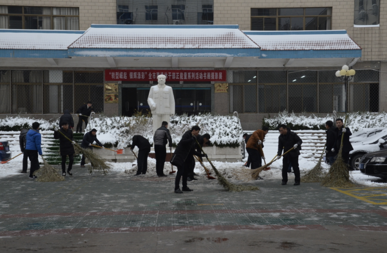 在紀(jì)委書記王獻(xiàn)忠、總經(jīng)理助理朱濤的帶領(lǐng)下,廣大干部職工紛紛拿起鐵鍬、掃帚等工具,不畏嚴(yán)寒,你鏟我掃,相互配合,一點(diǎn)點(diǎn)地將積雪和冰層鏟起清除。盡管大家的臉都凍得通紅通紅,但手中的掃雪工具卻不停地?fù)]舞著,忙得渾身是汗,在歡聲笑語中掃出了暢通的大道,受到過往市民的紛紛稱贊。