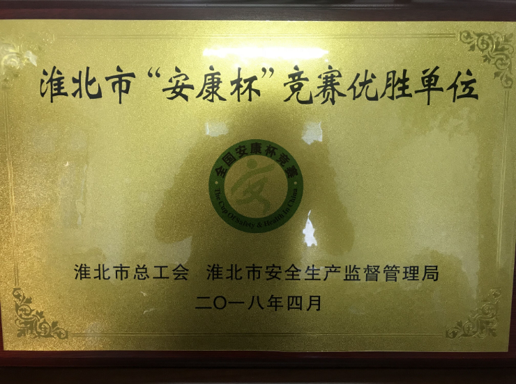 2017年,市總工會、市安全生產(chǎn)監(jiān)督管理局在全市開展了以“安全培訓(xùn)提素質(zhì)、班組管理強基礎(chǔ)”為主題的“安康杯”競賽活動?;幢笔薪ㄍ犊毓杉瘓F有限公司為保障企業(yè)的安全生產(chǎn)及職工的安全健康,充分調(diào)動廣大職工參與群眾性安全生產(chǎn)活動的積極性、主動性和創(chuàng)造性,認(rèn)真貫徹落實黨的十九大精神,在集團公司范圍內(nèi)開展2017年度“安康杯”競賽活動,在安全生產(chǎn)工作中取得了優(yōu)異成績,被淮北市總工會和淮北市安全生產(chǎn)監(jiān)督管理局評為淮北市“安康杯”競賽優(yōu)勝單位。