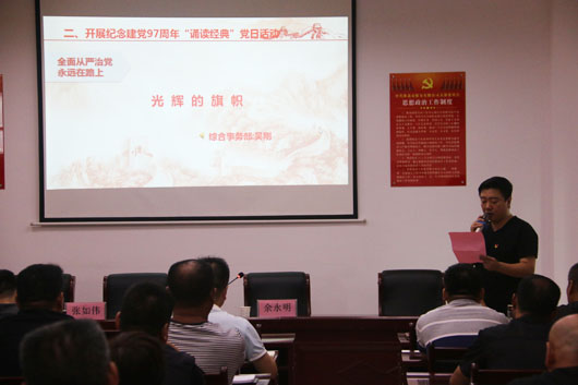 活動內(nèi)容包括:紀(jì)念建黨97周年“誦讀經(jīng)典”活動、“不忘初心,牢記使命”重溫入黨誓詞、觀看“中國碳谷·綠金淮北”紀(jì)錄片、“書記上黨課”活動等,談感受、談體會。