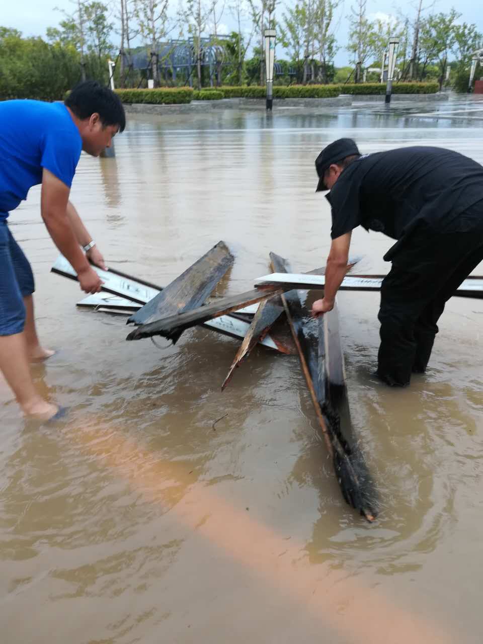 在搶險的第一線,淮北市南湖公園運營管理有限公司全體工作人員在公司領(lǐng)導(dǎo)帶領(lǐng)下,面對洪災(zāi)的嚴(yán)峻考驗,始終堅持安全至上,做到“汛情消退,警惕不松”,在做好安全防護(hù)措施的同時,積極開展災(zāi)后重建,確保了南湖景區(qū)優(yōu)美舒適的游覽環(huán)境。