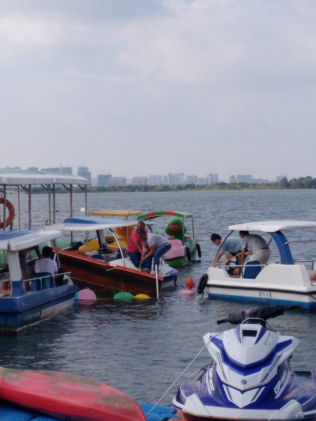 受連日暴雨影響,南湖景區(qū)多處出現(xiàn)積水現(xiàn)象,抗訊領(lǐng)導(dǎo)小組第一時間趕赴現(xiàn)場,進(jìn)行應(yīng)急處置。工作人員冒雨挖掘排水渠,設(shè)置安全警戒線,及時清掃路面淤泥和倒伏的樹木。另外,旅游碼頭由于湖區(qū)水位上漲,浮橋防抱柱達(dá)到最高升降點,工作人員現(xiàn)場進(jìn)行加高加固及時調(diào)整躉船泊位,消除安全隱患。