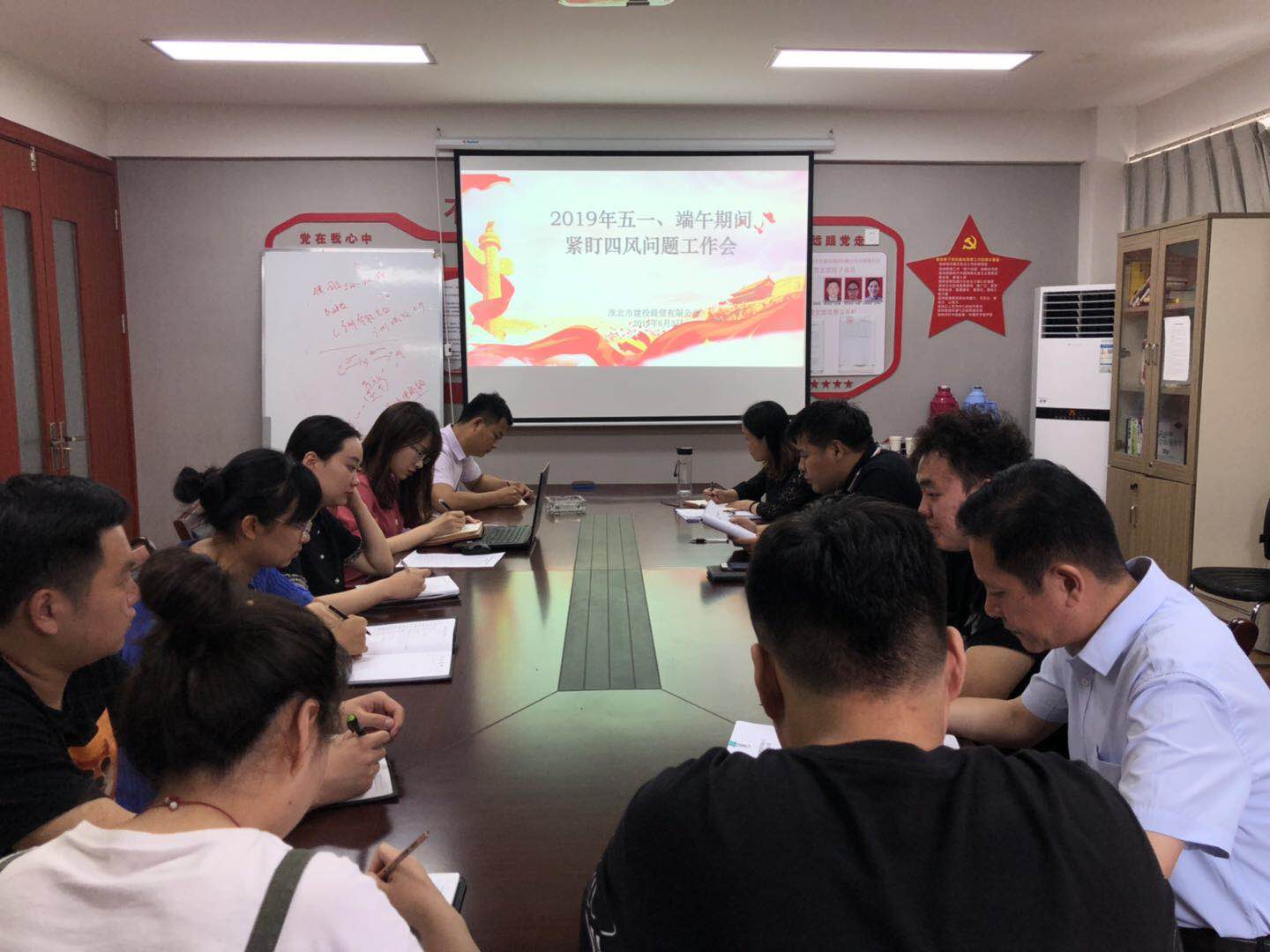 2019年6月3日下午,商貿公司總經理周敬安,副總經理金曉莉主持召開2019年“五一”、端午期間緊盯四風問題工作專題會議。