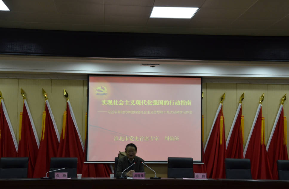周翰藻同志以《實(shí)現(xiàn)社會(huì)主義現(xiàn)代化強(qiáng)國的行動(dòng)指南》為題,從黨史研究領(lǐng)域出發(fā),深情回顧了中國共產(chǎn)黨的誕生歷程和成長史,就如何學(xué)好習(xí)近平新時(shí)代中國特色社會(huì)主義思想和黨的十九大精神進(jìn)行了深入講解。