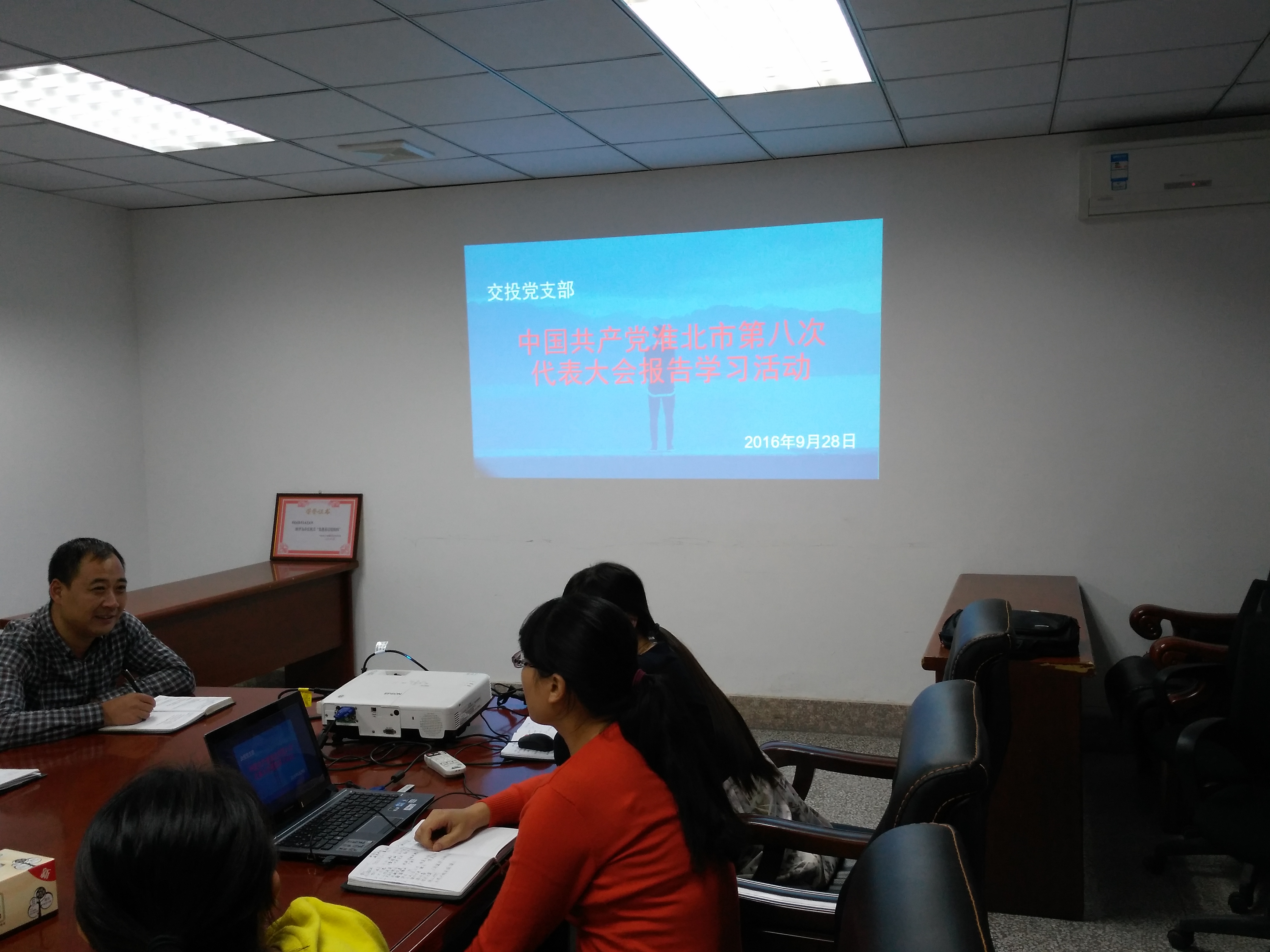 9月28日下午,市交投黨支部召開全體人員會議,傳達(dá)學(xué)習(xí)中國共產(chǎn)黨淮北市第八次代表大會上的報告—《從嚴(yán)治黨把方向,務(wù)實創(chuàng)新求發(fā)展在落實五大新理念中實現(xiàn)淮北轉(zhuǎn)型崛起》,緊密結(jié)合組織工作實際,研究貫徹落實意見。交投干部員工表示要思想高度重視,提振精神、再鼓干勁,自我加壓、高效落實,切實貫徹落實會議報告要求,切實履行好交投職責(zé),將各項工作做到實處。