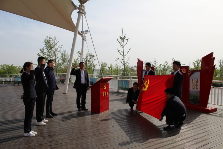 4月27日,融通黨支部組織黨員及支部新發(fā)展的黨員前往綠金湖圓夢島舉行了莊嚴(yán)而隆重的黨員宣誓活動。在融通黨支部副書記馬振林的帶領(lǐng)下,支部3名新發(fā)展黨員面對黨旗莊嚴(yán)宣誓,短短一百多字的誓言是他們對黨的承諾,是他們一生銘記的宣言。